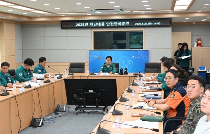 재난종합상황실에서는 시간대·단계별 진행되는 가상 상황에 따라 협업 부서와 유관기관이 대응 및 피해 수습, 복구 방안에 대해 토론하며 재난 대처 능력을 점검했다.