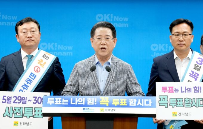 김영록 지사는 이날 도청 브리핑룸에서 6·3 대선 투표 동참 대도민 담화문을 발표, “우리는 불법 비상계엄으로 대한민국 헌정질서가 한순간에 무너지는 위기를 겪었다”며 “위대한 국민의 손으로 다시 찾은 대한민국, 이제 우리의 소중한 한 표로 새로운 역사를 써야 할 때다. 국민이 주인 되는 국민주권시대를 열어야 한다”며 이같이 밝혔다.