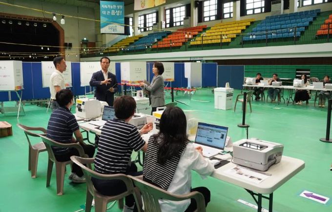 이날 조 군수는 음성읍 사전투표소를 방문해 사전투표소 운영장비 설치현황과 기표소와 투표함 설치상태 등 사전투표소 준비 사항을 점검했다.