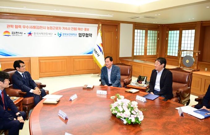 이번 협약은 김천시가 농업 근로자 기숙사 건립 공사 추진 과정에서 교육부 산하 한국사학진흥재단의 우수한 관학 협력 사례로 선정됨에 따라, 타 지자체 확산모델로 홍보하기 위해 각 기관 협의를 거쳐 추진됐다.