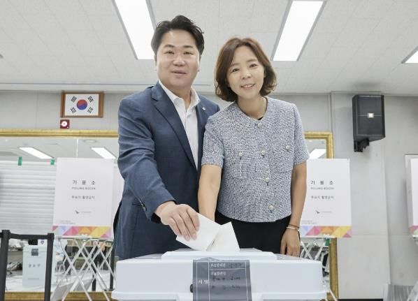 이날 오 시장은 아내 윤순원 여사와 함께 투표를 마친 뒤, 현장에서 선거 사무를 맡고 있는 공직자들을 격려했다.