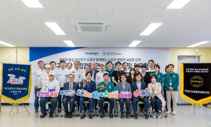 부산진구는 5월 28일 관내 안창마을커뮤니티센터에서 동의대학교 미래교육원과 업무협약을 체결하고 ‘부산진구 드론 행정지원 연구회’ 발대식을 개최했다고 밝혔다.