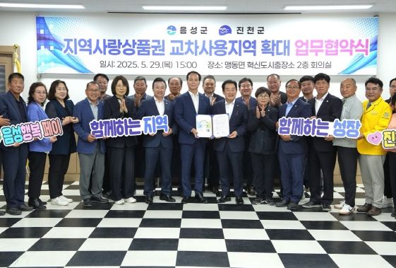 (아름다운교육신문) 음성군은 29일 맹동면 혁신도시 출장소에서 진천군과 지역사랑상품권 교차사용지역 확대를 위한 업무협약식을 추진했다.