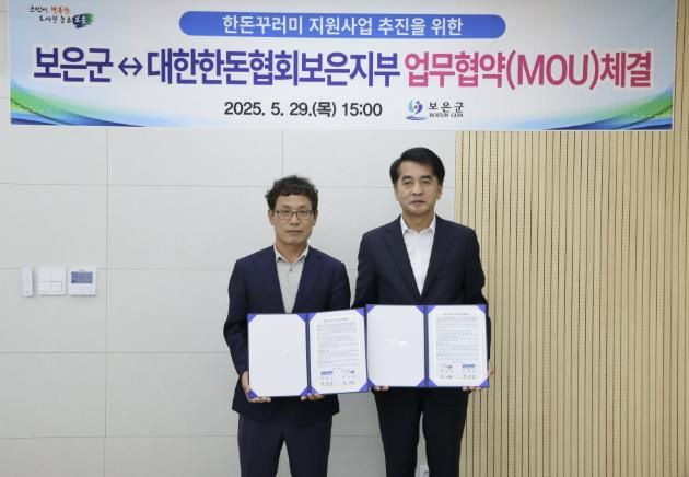 (아름다운교육신문) 보은군은 지난 29일 저출산 극복 및 출산 장려를 위해 (사)대한한돈협회보은지부와 ‘한돈 꾸러미 지원사업’ 추진을 위한 업무협약(MOU)을 체결했다.