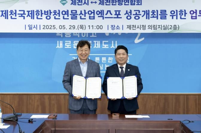 (아름다운교육신문) 제천시는 5월 29일 시청 의림지실에서 제천한방연합회와 2025 제천국제한방천연물산업엑스포의 성공적인 개최를 위한 업무협약을 체결했다.