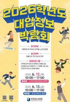 (아름다운교육신문) 전라남도교육청은 오는 6월 12일 전라남도교육청순천만생태문화교육원과 13일 초당대학교에서 ‘2026학년도 대입정보 박람회’를 개최한다.