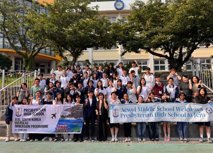 지난 1월 애월중 학생 10명이 싱가포르 Presbyterian High School을 방문한 데 이어 이번에는 싱가포르 학생 22명이 애월중을 찾아 국제교류 동아리 학생 25명과 함께 다양한 교류 활동을 펼쳤다.