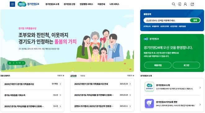 ‘경기민원24’는 경기도민이 각종 행정서비스를 온라인으로 손쉽게 신청할 수 있도록 지원하는 누리집이다. 주민등록 등초본, 건강보험 자격확인서 등 29종의 행정정보가 시스템과 연계되며, 불필요한 서류 제출 없이 신청 자격을 자동 확인할 수 있다.