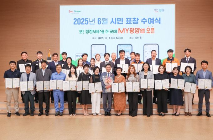 (아름다운교육신문) 광양시는 6월 4일 시청 시민홀에서 지역사회 발전에 기여하고 각 분야에서 헌신적인 봉사활동을 펼쳐온 시민 36명에게 시정발전 유공 시민 표창을 수여했다고 밝혔다.