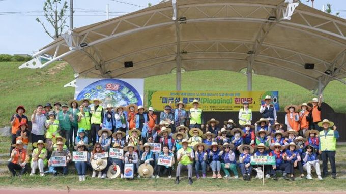 미르섬 등 행사 구역을 5개로 나누어 걷거나 뛰며 쓰레기를 줍는 ‘플로깅(환경정화활동)’을 진행해 약 0.5톤의 쓰레기를 수거했다.