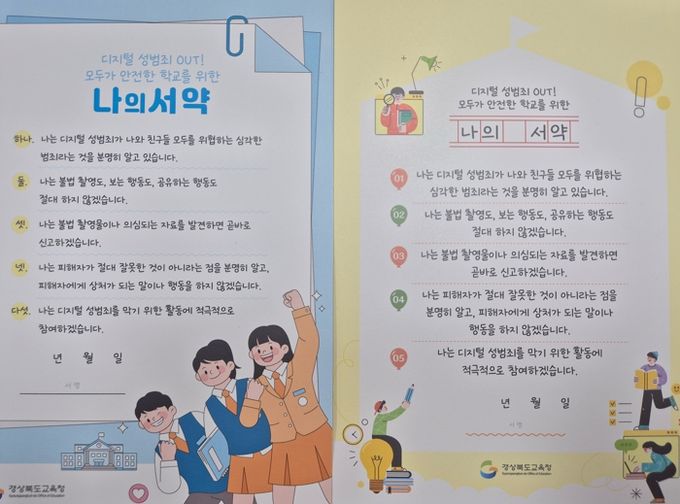 모든 학생과 교직원이 디지털 성범죄 예방 실천을 약속하는 ‘나의 서약서’도 제작,보급한다.