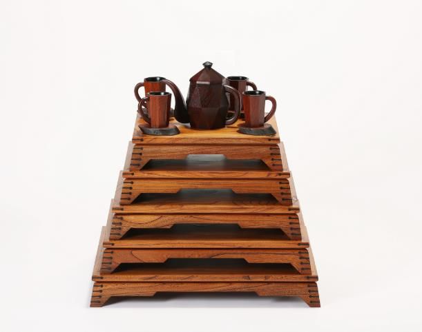 대상작 ‘단차의 조화-오단 찻상 세트’는 36년간 교사로 재직한 작가가 체육 시간에 사용했던 ‘뜀틀’의 단차에서 영감을 받아 다섯 단계로 구성된 찻상으로 구현한 작품이다.