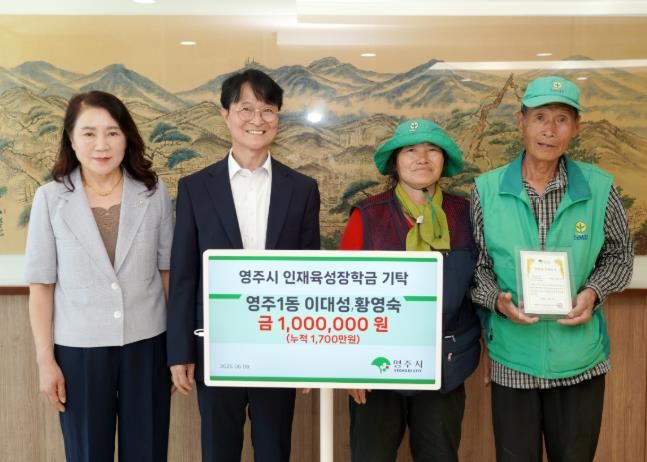 (아름다운교육신문) (재)영주시인재육성장학회는 지난 6월 9일, 영주1동 새마을지도자인 이대성·황영숙 부부가 인재육성 장학금 100만 원을 기탁했다고 밝혔다.
