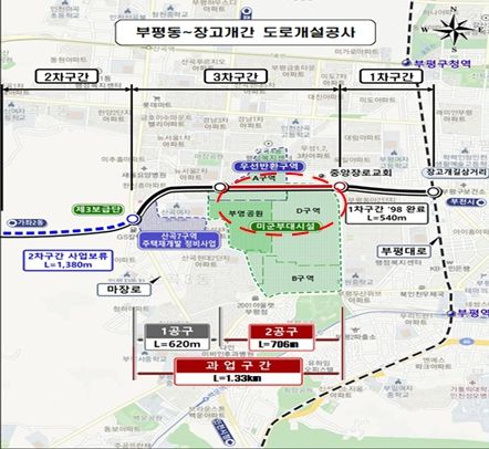 3-2공구 도로개설구간인 산곡남중학교에서 주안장로교회까지(706m) 개통되면 산곡동에서 부평시장역까지 약 5분 이상의 시간 단축 및 도로 정체 해소에 크게 도움이 될 것으로 기대하고 있다.