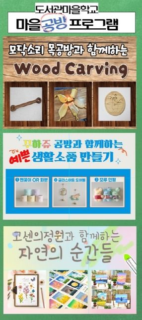 프로그램은 총 세 가지로 구성됐으며, ‘손끝으로 새기는 나무 이야기’는 6월 24일부터 7월 8일까지 매주 화요일 오전 10시부터 12시까지 모닥소리 목공방에서 열린다.