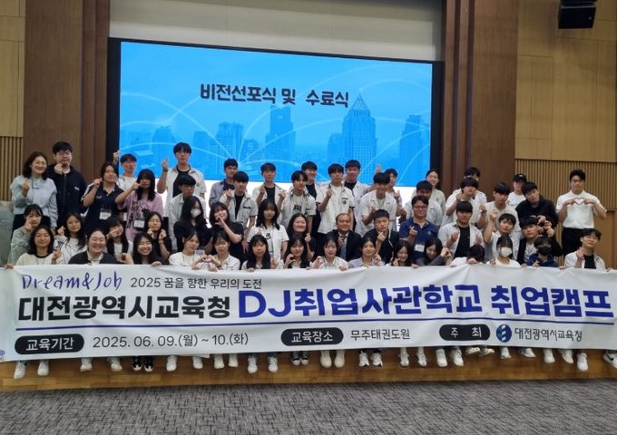 (아름다운교육신문) 대전시교육청은 6월 9일부터 10일까지 전북 무주 태권도원에서 특성화고 학생들의 취업역량 강화를 위한 ‘2025학년도 DJ(Dream&Job) 취업사관학교 취업캠프’를 운영했다고 밝혔다.