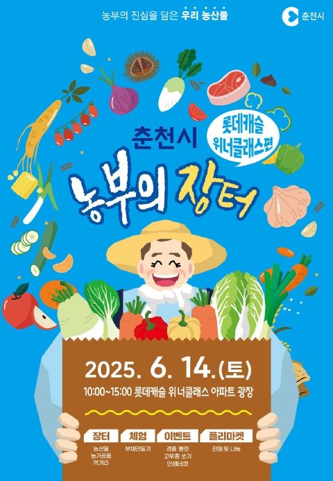 1회차 행사에는 춘천 지역 30여 농가가 참여해 제철 농산물, 가공식품, 축산물 등 80여 개 품목을 판매하며, 아이들을 위한 체험 부스와 먹거리 행사도 함께 열린다.
