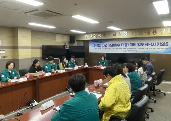 (아름다운교육신문) 부산광역시교육청은 12일 오후 2시, 교육청 재난대응상황실에서 본청 및 교육지원청의 재난안전 담당자 20여 명이 참석한 가운데 '2025년 여름철 자연재난(호우·태풍) 대비 업무협의회'를 개최했다.