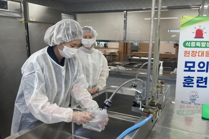 이날 훈련에서는 ▲식중독 발생 신속 보고 ▲관계기관 간 신속전파 및 현장 출동 ▲환경 조사 및 검체 채취 ▲사후 조치 및 유증상자 모니터링 등으로 진행됐다.