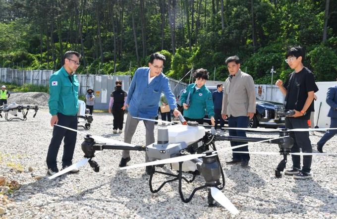 특히 드론 방제는 기존 항공방제와 달리 낮은 고도에서 소나무만을 정밀하게 표적으로 삼을 수 있어 효과가 높고, 면적대비 방제 비용이 적어 예산 절감 효과도 크다는 장점이 있다.