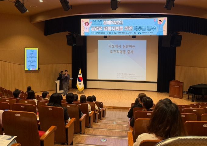 (아름다운교육신문) 제주특별자치도교육청은 17일 제주학생문화원 소극장에서 도내 장애학생 보호자 80명을 대상으로 ‘2025 장애학생 긍정적 행동지원을 위한 보호자 연수’를 실시했다.