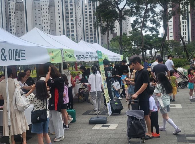 (아름다운교육신문) 아산시먹거리재단이 주관하고 농업인과 시민이 함께 만든 아산농부시장이 6월 14일 탕정면 한들물빛공원(매곡리 1388)에서 성황리에 운영되며 농업인과 소비자를 연결하는 상생장터로 자리매김했다.