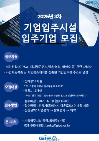 입주를 희망하는 기업은 진흥원 누리집에서 입주신청서, 사업계획서 등 서류를 내려받아, 6월 30일 오후 16시까지 이메일로 제출하면 된다.