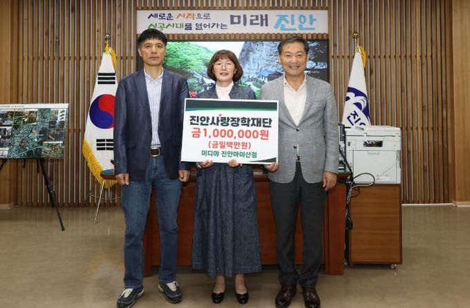 (아름다운교육신문) 진안사랑장학재단은 20일 부귀면 일원에 위치한 이디야 진안 마이산점에서 장학금 100만원을 기탁했다고 밝혔다.