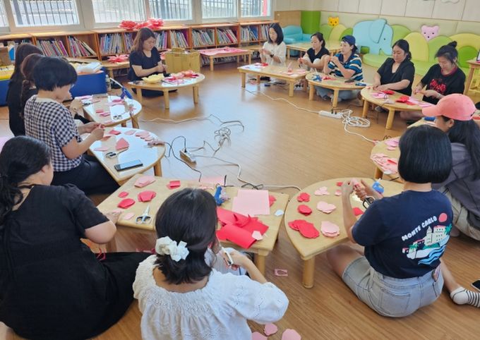 참여한 보호자들은 종이꽃 만들기와 사진 촬영 공간 구성에 대한 안내를 받은 후 각자의 감성과 아이디어를 살려 결과물을 완성했다.