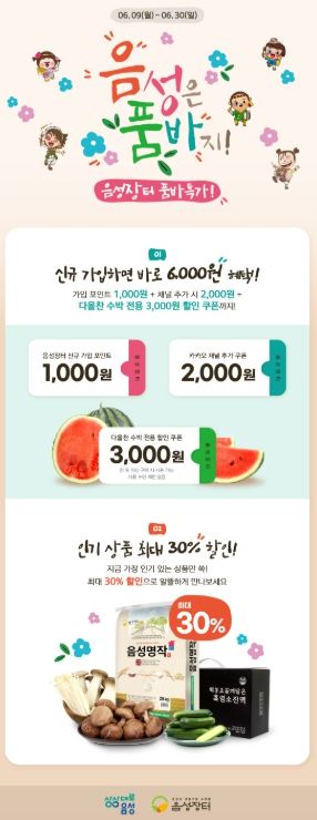 이번 이벤트는 ‘품질 보장, 바로 할인! 음성장터 품바특가!’라는 슬로건 아래 신규 가입 고객에게 최대 6천원의 혜택을 제공한다.