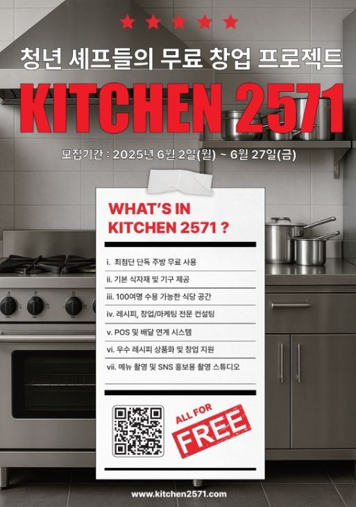 모집 기간은 27일까지로 요리나 식음료 창업에 관심 있는 만 45세 이하 청년이라면 누구나 신청할 수 있다.