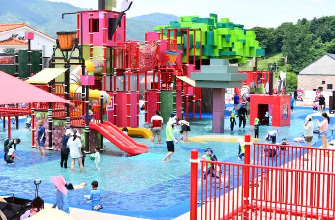 2023년 개장한 장수누리파크 발물놀이장은 게임 속 나라를 그대로 옮겨놓은 듯한 마인크래프트 모양과 아이들이 안전하게 물놀이하기 좋은 발목 수심의 물놀이장으로 아이들의 상상력을 자극하는 알록달록한 색감과 다양한 블록모양의 시설이다.
