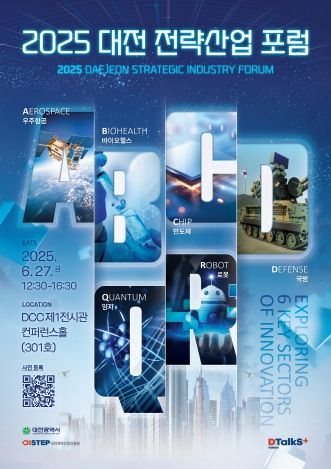 (아름다운교육신문) 대전시는 대전과학산업진흥원(DiSTEP)과 함께 오는 6월 27일 오후 12시 30분, 대전컨벤션센터(DCC) 제1전시장 3층 컨퍼런스홀에서 '2025년 대전 전략산업 포럼'을 개최한다.