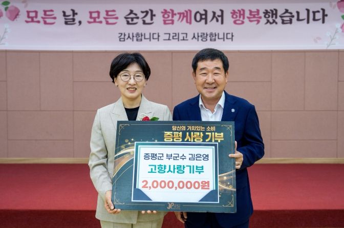 퇴임 후 고향사랑기부금을 기탁한 김은영 전 부군수는 “증평에서 함께한 시간이 짧지만 즐겁고 행복했다”며 “좋은 추억을 안고 떠나는 만큼 증평군 발전을 진심으로 바란다”고 밝혔다.