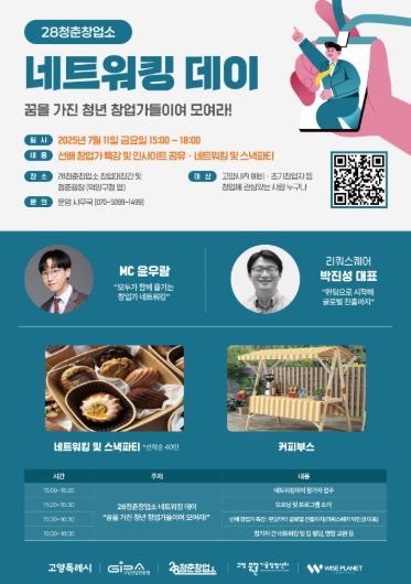 (아름다운교육신문) 고양산업진흥원 28청춘창업소가 오는 7월 11일 고양시 청년 창업가들의 교류와 협업을 위한‘2025년 28청춘창업소 네트워킹 데이’를 개최한다.