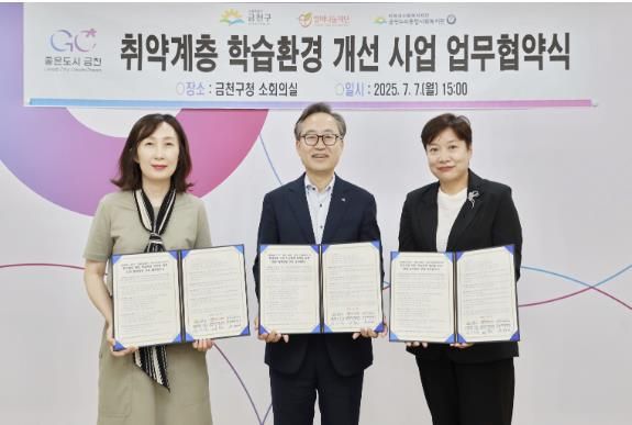 (아름다운교육신문) 금천구는 관내 취약계층 아동의 학습환경 개선을 위해 사회복지법인 열매나눔재단, 금천누리종합사회복지관과 7일 협약을 체결했다고 밝혔다.
