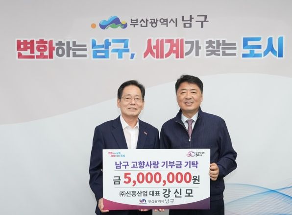 (아름다운교육신문) 부산 남구는 ㈜신흥산업 강신모 대표가 500만 원을 기부하여 고향사랑기부제 열일곱 번째 명예의 전당에 올랐다.