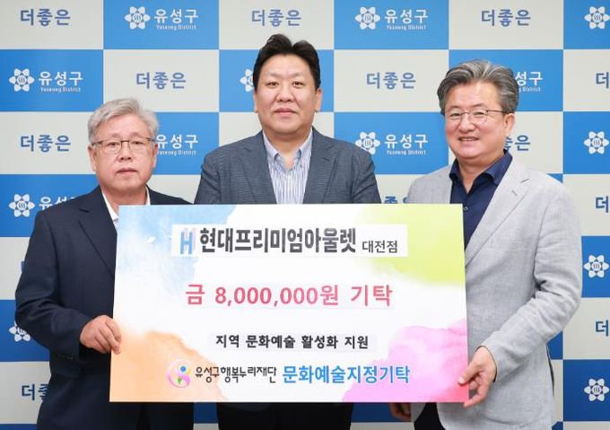(아름다운교육신문) 대전 유성구는 8일 현대프리미엄아울렛 대전점이 유성구행복누리재단 문화부에 후원금 800만 원을 기탁했다고 밝혔다.