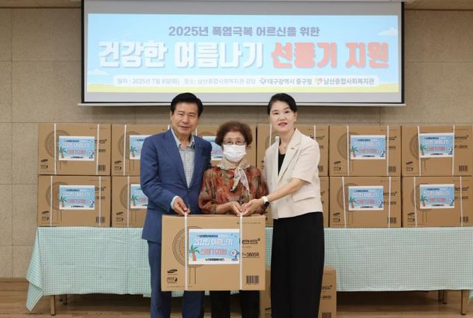 (아름다운교육신문) 대구 중구는 8일 남산종합사회복지관에서 ‘건강한 여름나기 선풍기 전달식’을 열고, 관내 65세 이상 홀로 어르신 50명에게 선풍기 50대를 전달했다.