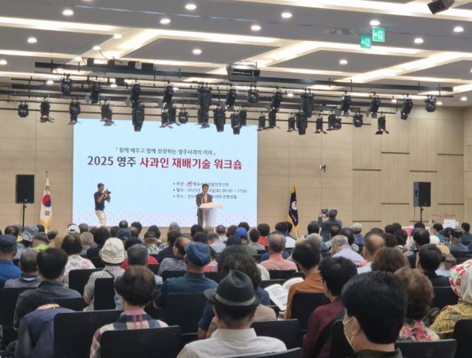(아름다운교육신문) 영주시사과발전연구회(회장 김진학)가 주관한 ‘2025 영주사과인 재배기술 워크숍’이 지난 7월 8일 영주 선비세상 컨벤션홀에서 성황리에 개최됐다.