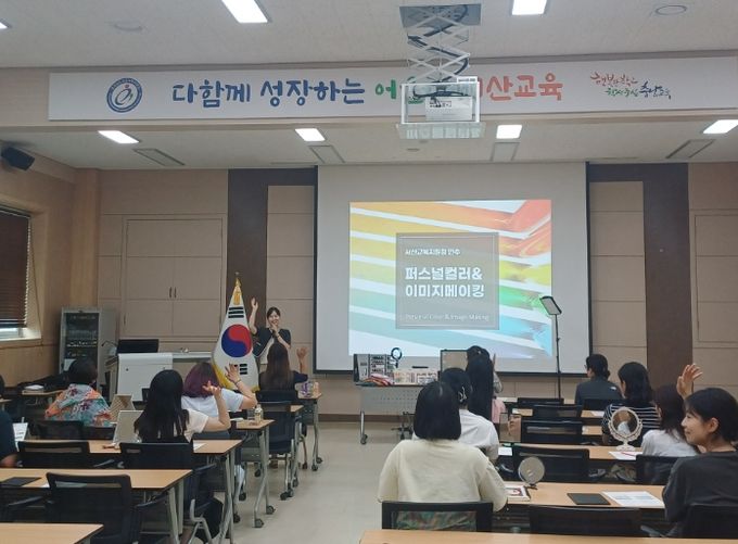 특히 이번 연수에서는 ‘자존감과 자신감을 높이는 긍정 이미지 전략’을 중심으로 ▲퍼스널 컬러의 기초 이해 ▲나의 퍼스널 컬러 찾기 ▲페이스 이미지메이킹 실습이 진행되어, 보호자들이 스스로의 아름다움을 발견하고 자신을 존중하는 시간을 가졌다.