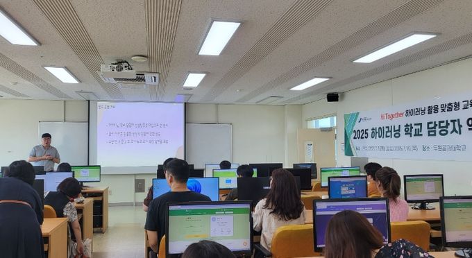 이번 연수는 학생 맞춤형 교육 실현을 위한 인공지능 기반 교수-학습 플랫폼 ‘하이러닝’의 현장 활용 역량을 강화하고 고도화된 하이러닝 기능 및 AI 서논술형 평가 기능을 안내하여 하이러닝 활용 방식의 다양화를 안내하기 위해 마련됐다.
