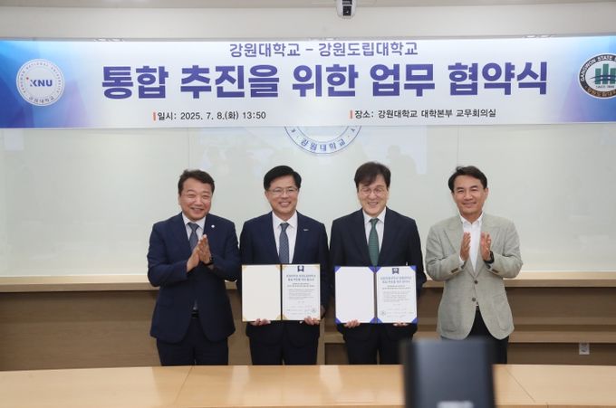 (아름다운교육신문) 오늘(7월 8일) 오후 2시, 강원대학교에서 강원대-강릉원주대-강원도립대 간 통합 추진을 위한 업무협약(MOU)이 체결됐다.