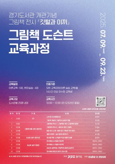 교육은 ▲온라인 이론 교육 6회(12시간, 지식 플랫폼 GSEEK 활용) ▲공공도서관 8개소에서의 대면 실습 4회(8시간)로 구성된다. 그림책의 개념과 역사, 도슨트의 역할, 전시 스크립트 작성 등 실제 활동에 필요한 내용을 담았다.