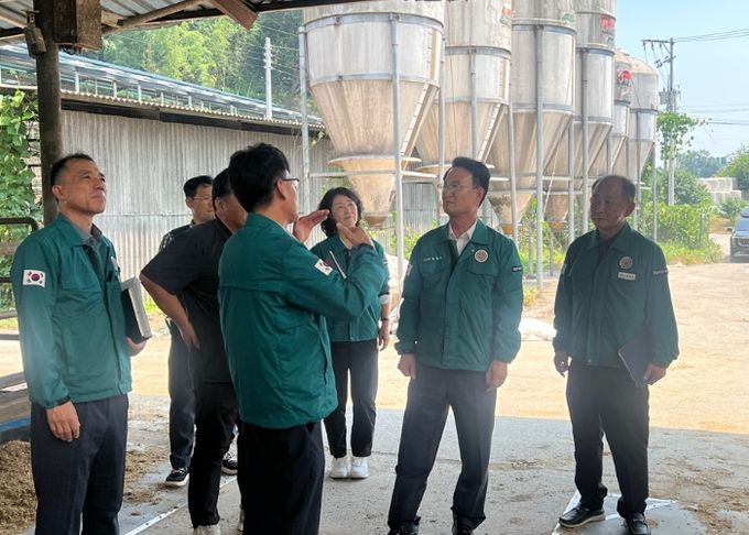 이날 박 시장은 △폭염 대응시설(송풍기, 안개분무기 등) 작동 상태 점검 △ 가축 급수 및 사료 급여 상황 점검 △축사 내 온도·습도 관리 점검 △축사 전기설비 안전관리 지도 등을 실시했다.