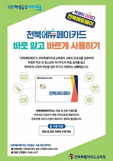 장경단 학교안전과장은 “전북에듀페이가 학생과 보호자에게 교육비로 인식되고 있고, 지역경제 활성화에도 긍정적인 파급 효과를 낳았다는 점에서 교육 수요자와 지역사회의 높은 호응을 얻은 것 같다”며 “앞으로도 교육가족과 적극 소통하며, 모두에게 보탬이 되는 정책으로 성장시켜 나가겠다”고 말했다.