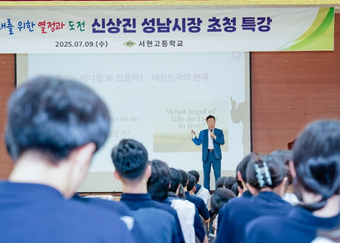 (아름다운교육신문) 신상진 성남시장은 7월 9일 오후 3시 분당구 서현동 서현고등학교 체육관에서 진로 특강을 했다.