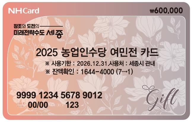 시는 가구당 연 1회, 60만 원을 세종시 지역화폐 여민전으로 지급할 예정이다.