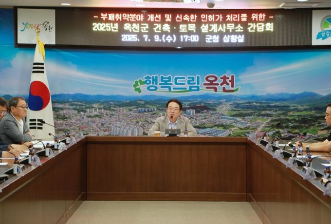 (아름다운교육신문) 지난 9일 옥천군 군청 상황실에서 건축‧토목 부패 취약분야인 인허가의 투명성과 공정성을 높이고 신속한 행정 처리를 위한 간담회를 개최했다.
