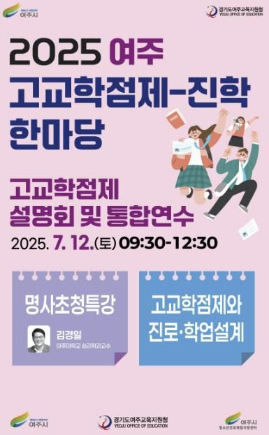 (아름다운교육신문) 경기도여주교육지원청은 오는 7월 12일 오전 9시 30분부터 여주 세종국악당 공연장에서 '2025 여주 고교학점제-진학한마당' 1부 행사로 학부모 대상 고교학점제 설명회 및 통합연수를 개최한다.